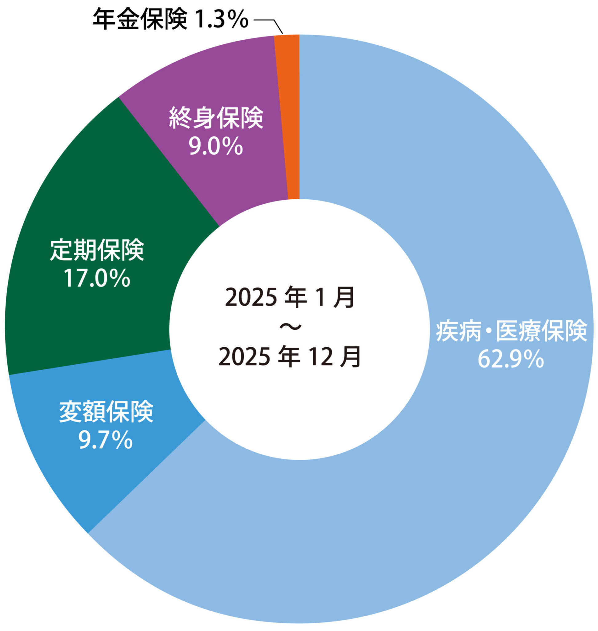 - ■株式会社ワンダフルライフ 新契約保険種類別販売シェア(件数ベース:2025年1月~2025年12月)